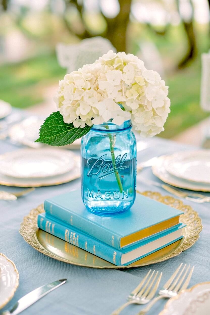 Crisp Blue Mason Jar and Hydrangea Book Set