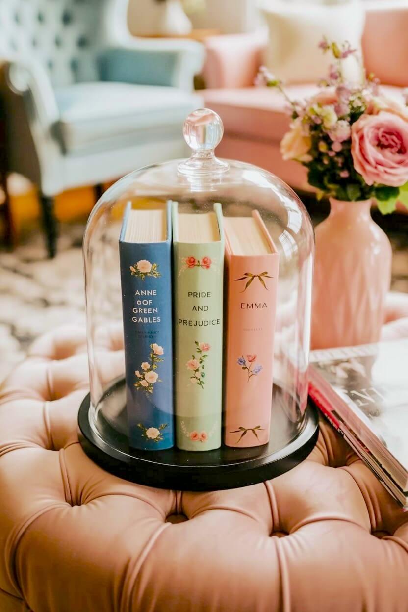 Tucking pastel editions of classic novels inside protects them while turning everyday items into an elegant display.