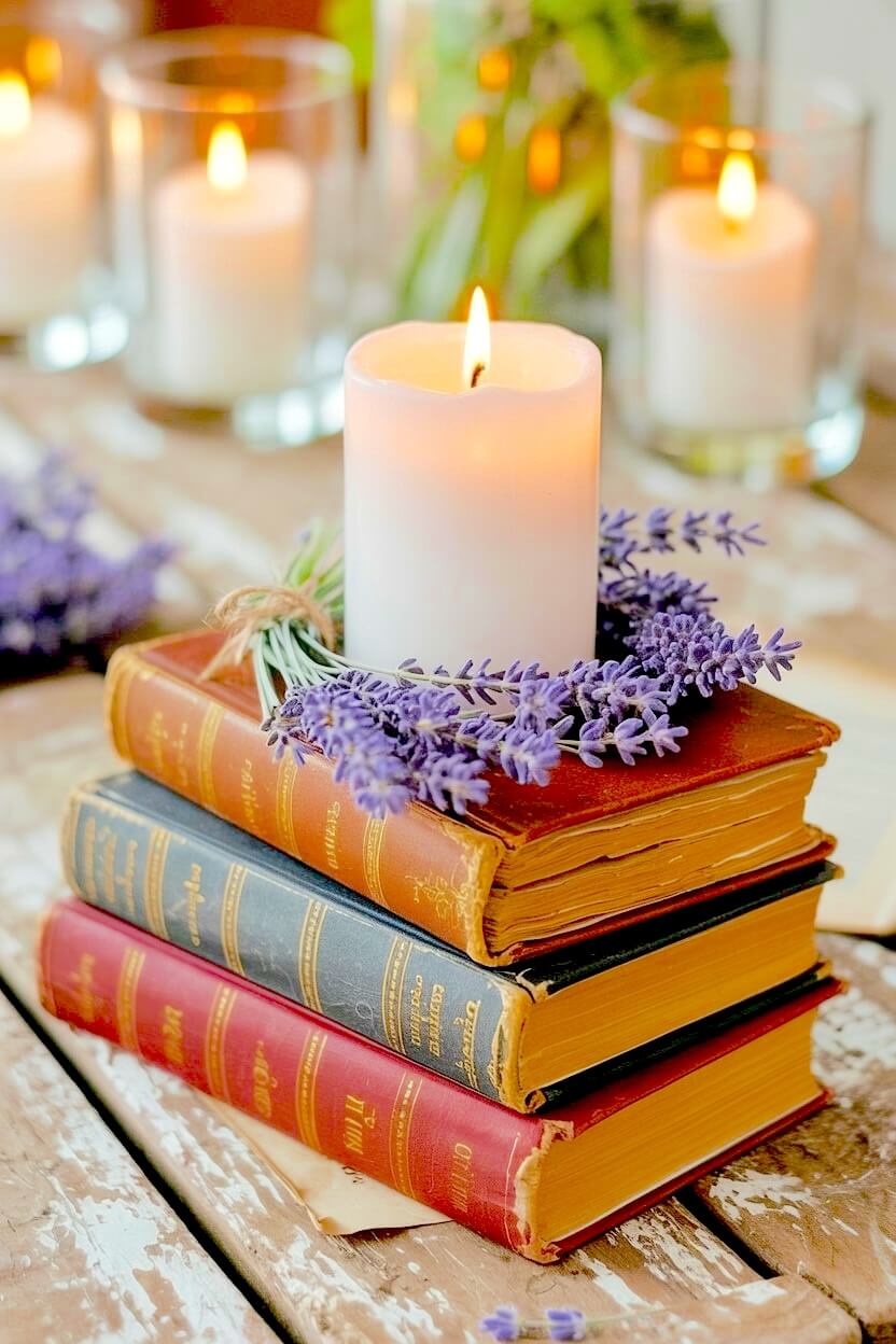 Calming Lavender and Candle Book Display