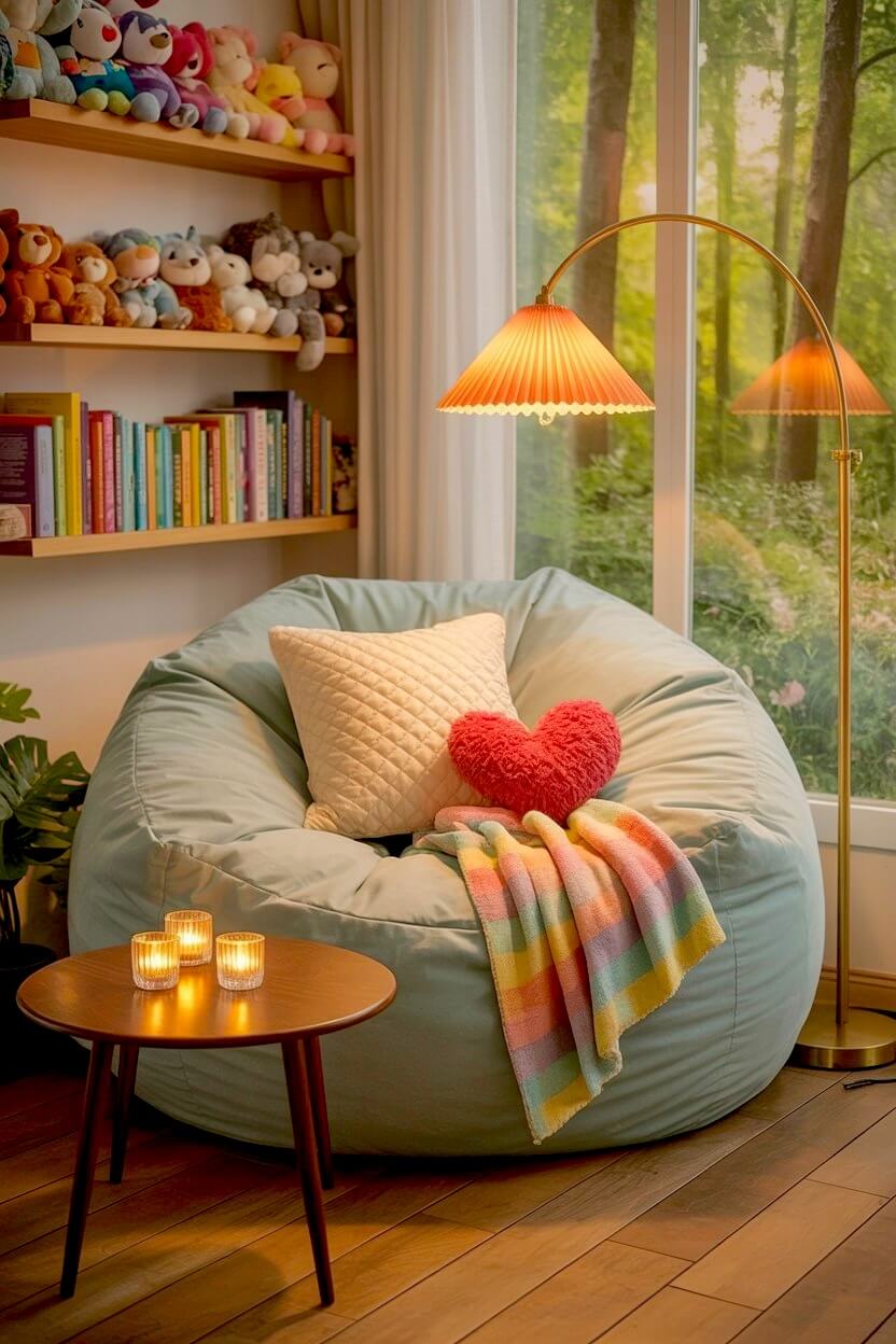 Toss on a rainbow throw and a heart pillow to make your reading time feel like a joyful escape.