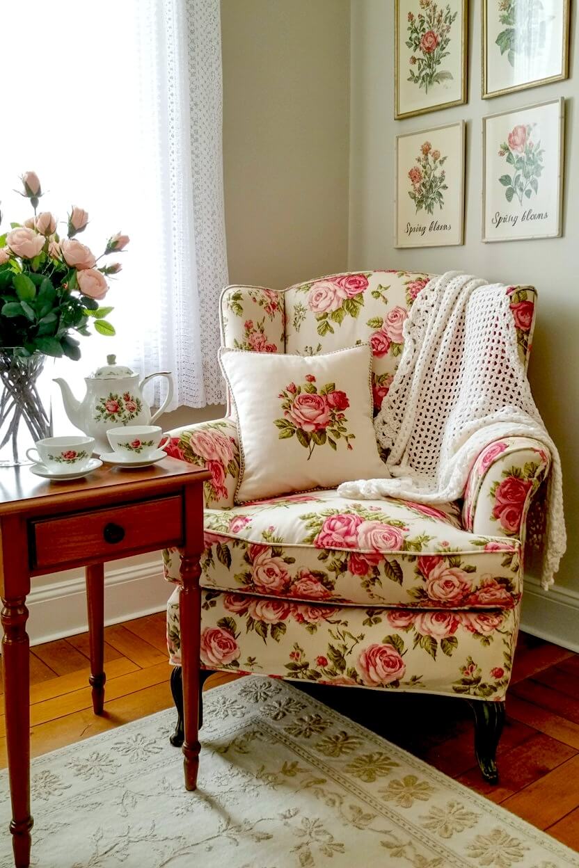 You can turn a simple corner into a charming escape by embracing the beauty of floral prints.