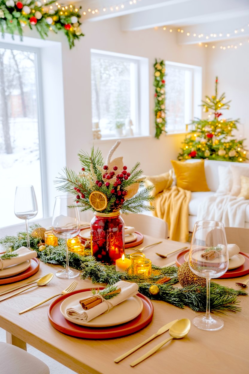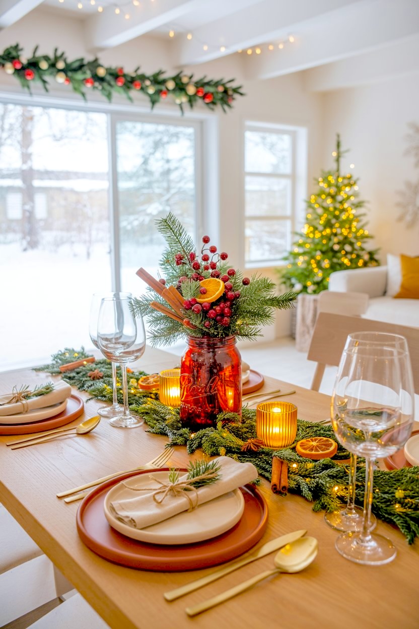 ・Farmhouse Glow DIY: The Prettiest Mason Jar Christmas Table Centerpiece You Can Make in Minutes