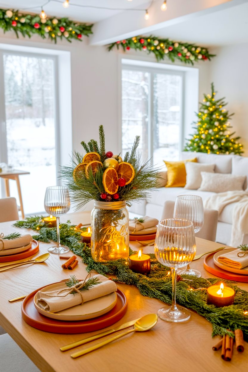 Dried Citrus Mason Jar Christmas Table Centerpiece