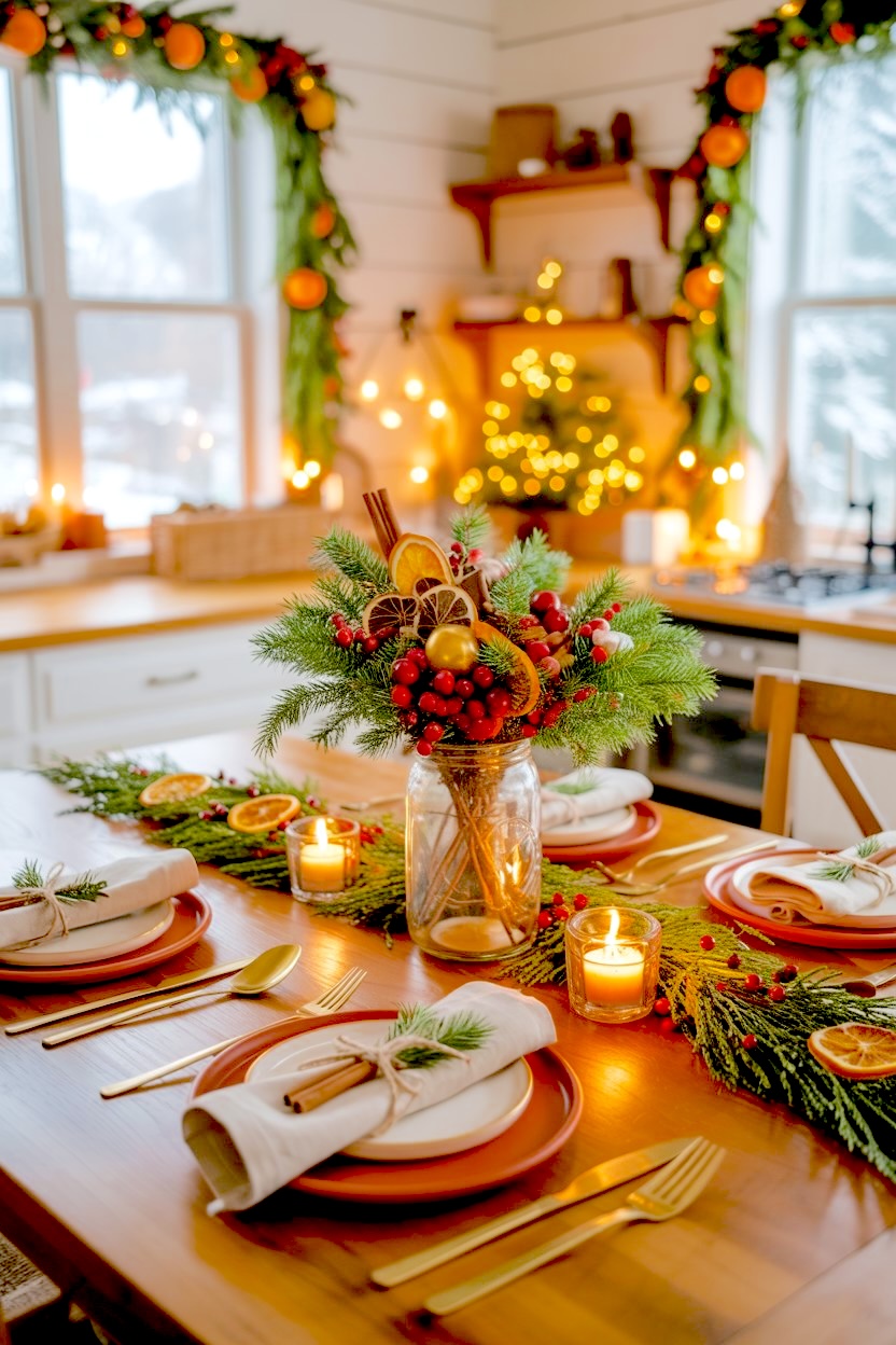 - Dried Citrus Slices – The small detail that makes the whole setup memorable. Layer them in the jar and along the garland for color, texture, and that gentle holiday scent.