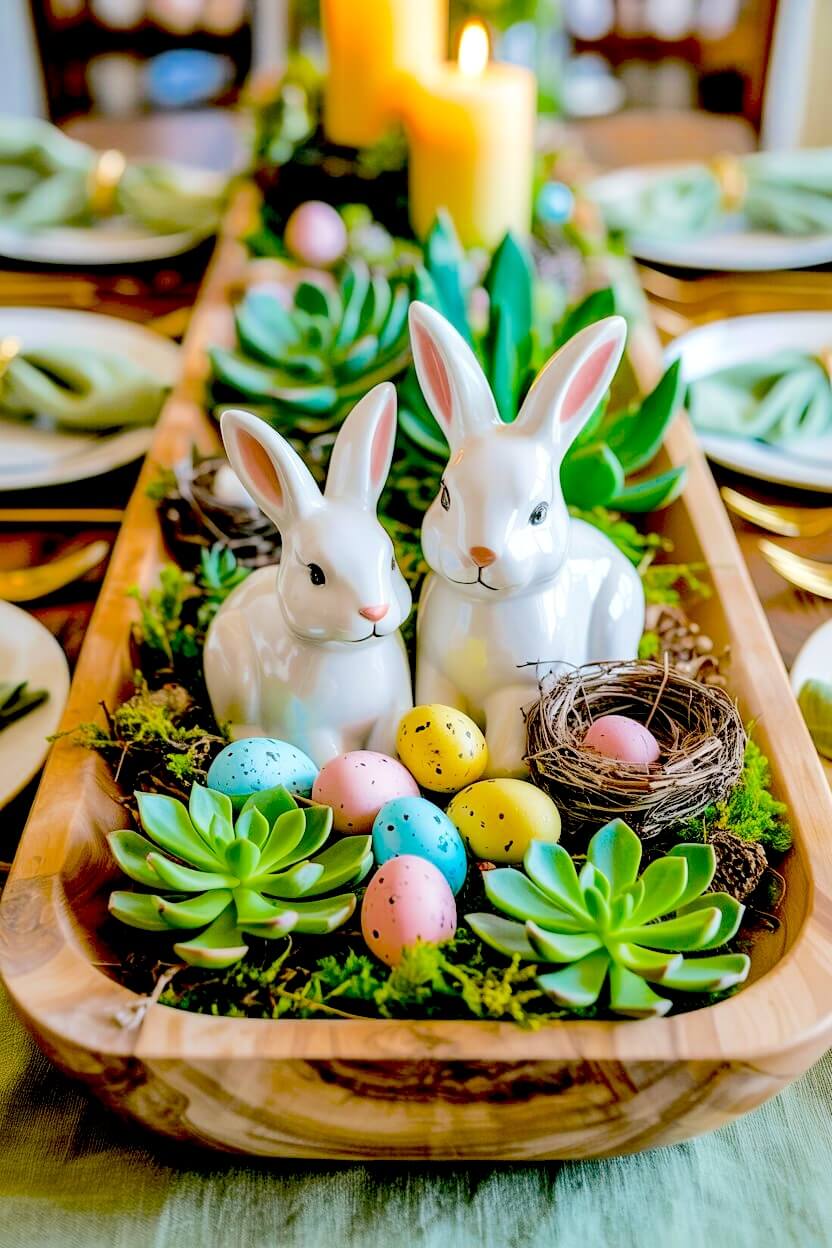Earthy Succulent Easter Dough Bowl Centerpiece