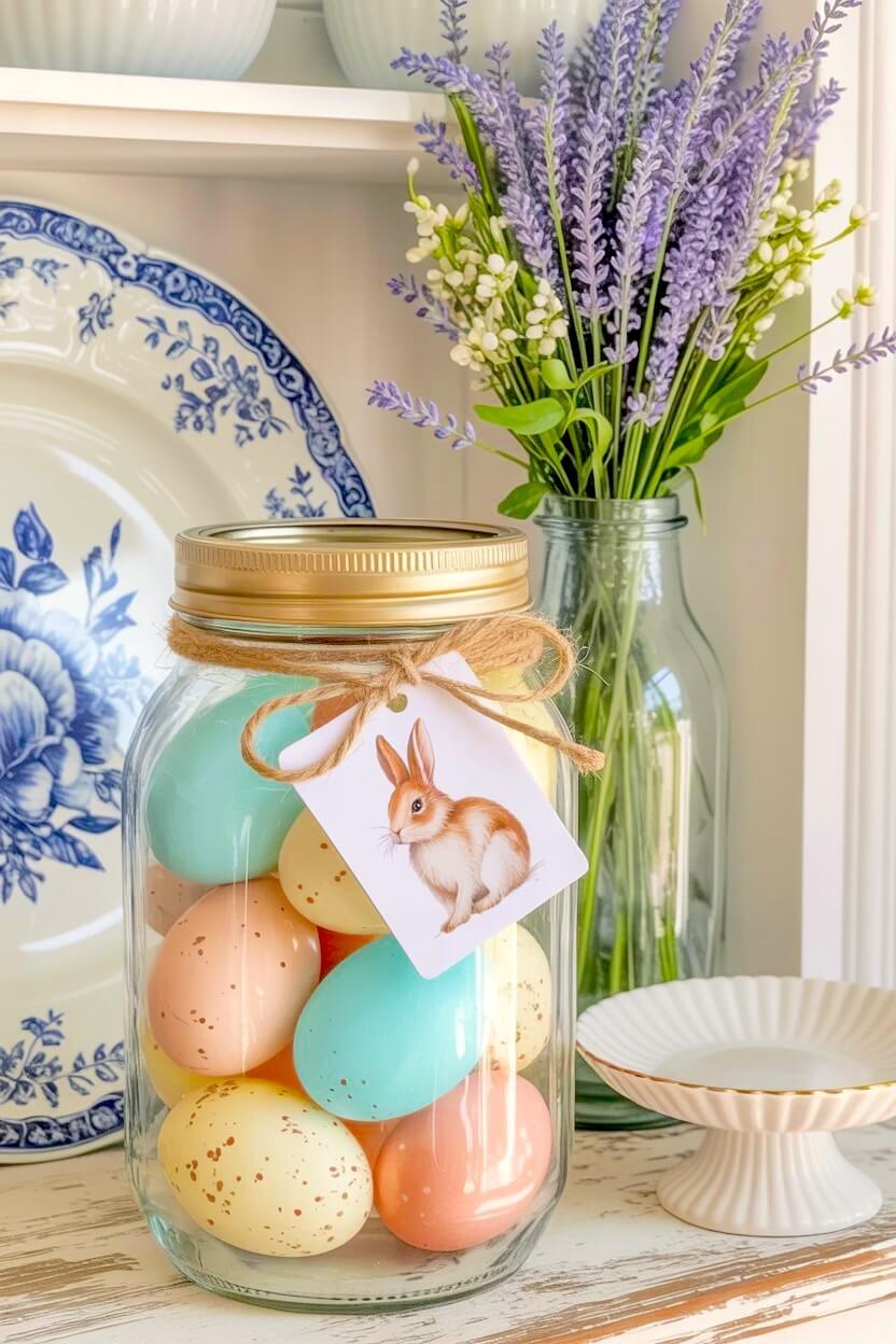 Bunny-Tagged Pastel Egg Jar