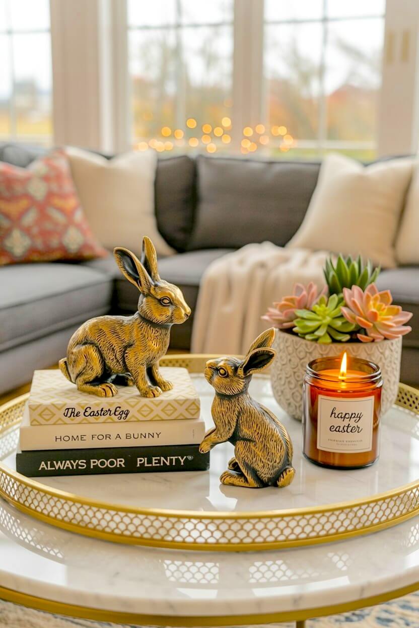 You can stack a couple of neutral books to give those heavy brass bunnies a little extra height.