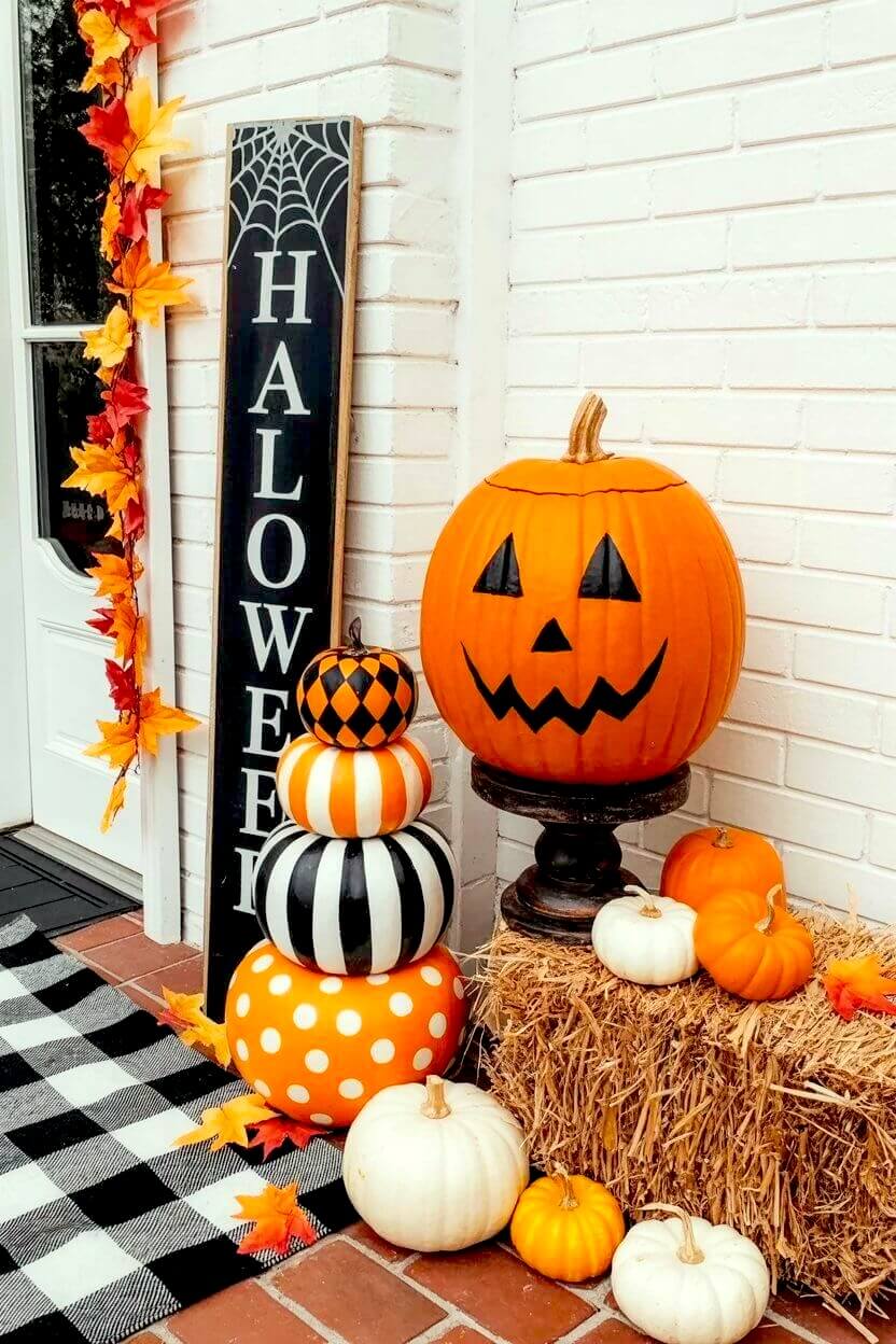 - Start with the classic. Pumpkins are the fastest way to set the Halloween tone and ground the porch before anything else.
