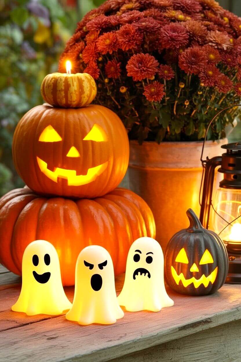 - Unconventional pumpkin light buddies – Playful and a little unexpected. You can scatter them around your porch or even use them to light the path for trick-or-treaters.