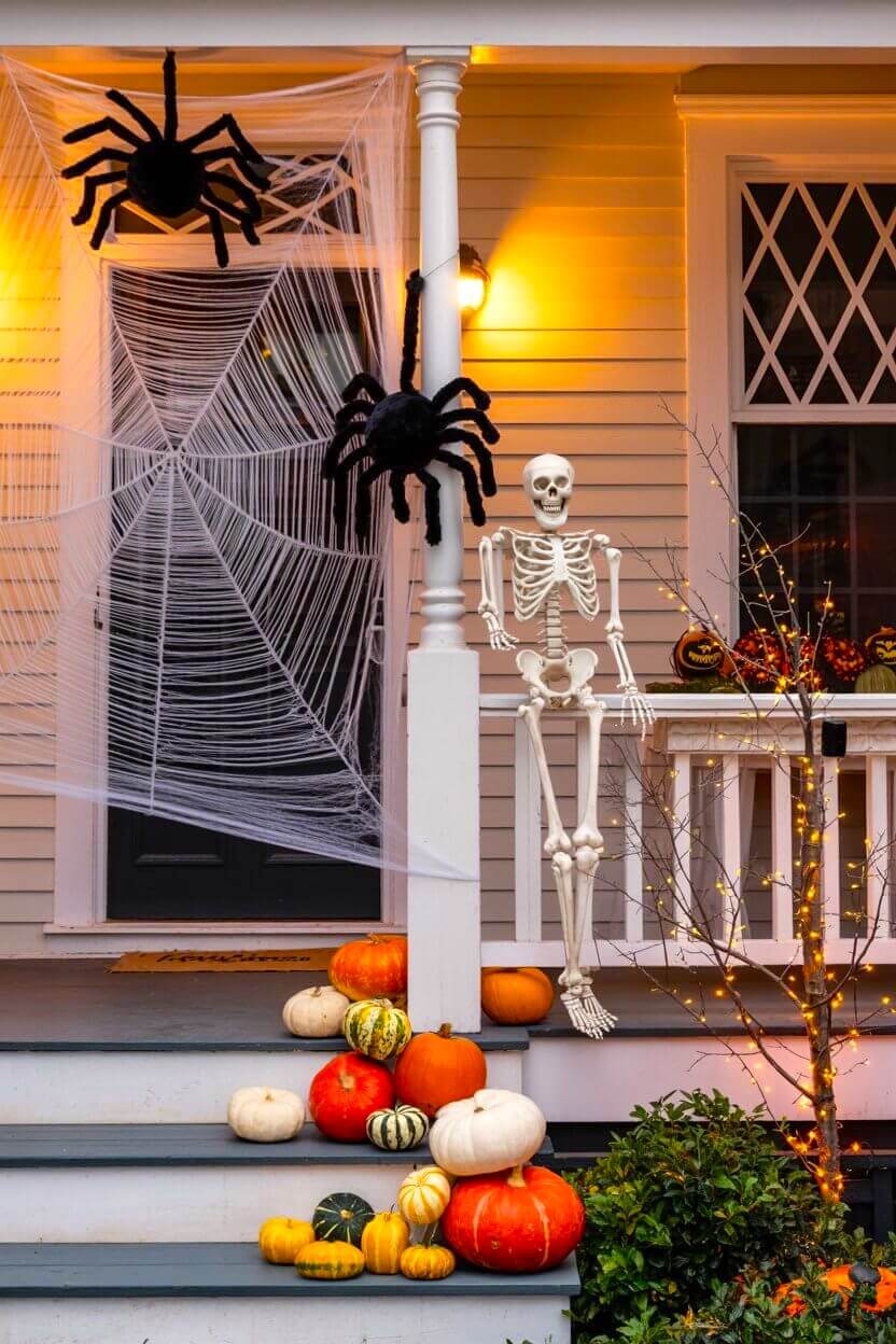 Go bold with a giant web and spider combo — it instantly claims the porch as Halloween-ready.