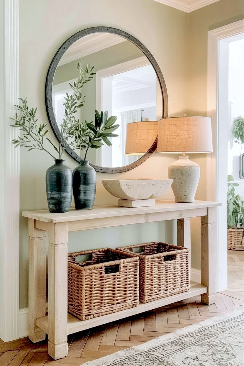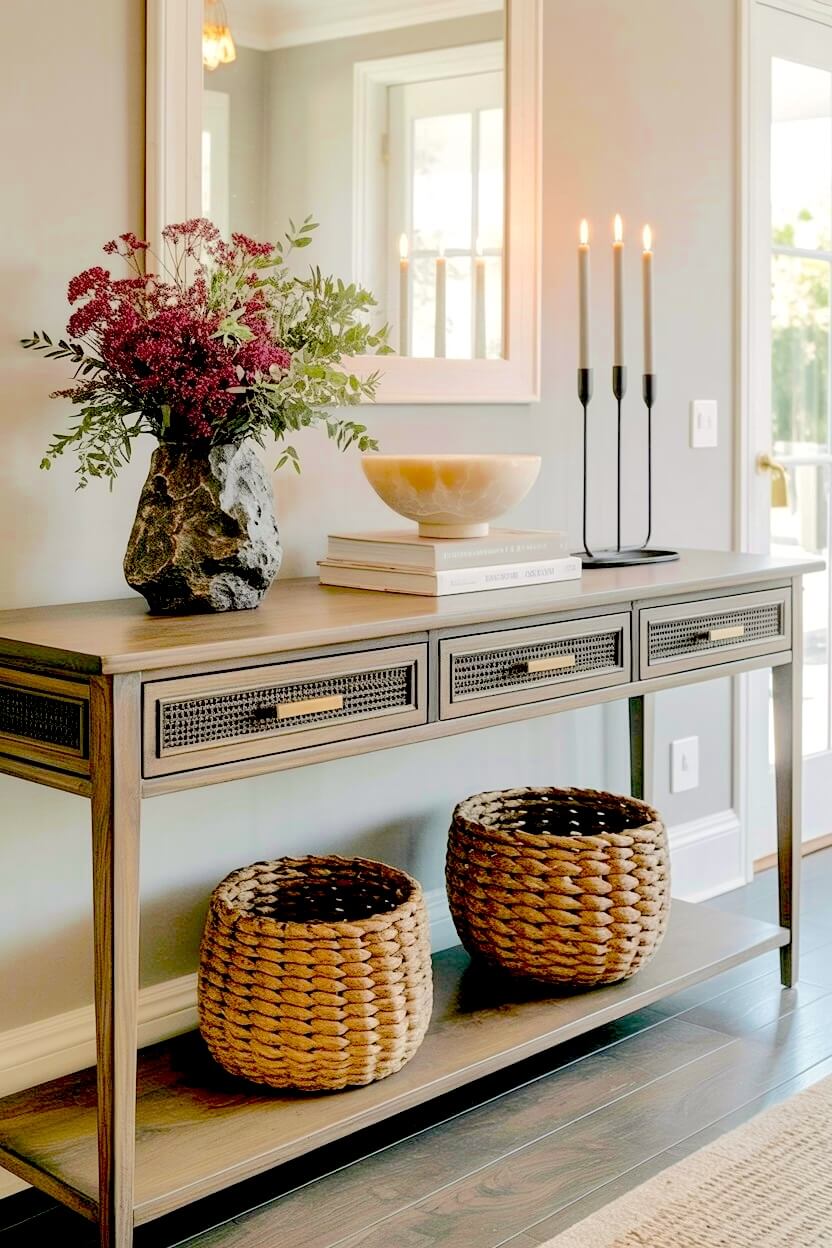 This arrangement gives your entryway a cozy, textured vibe.