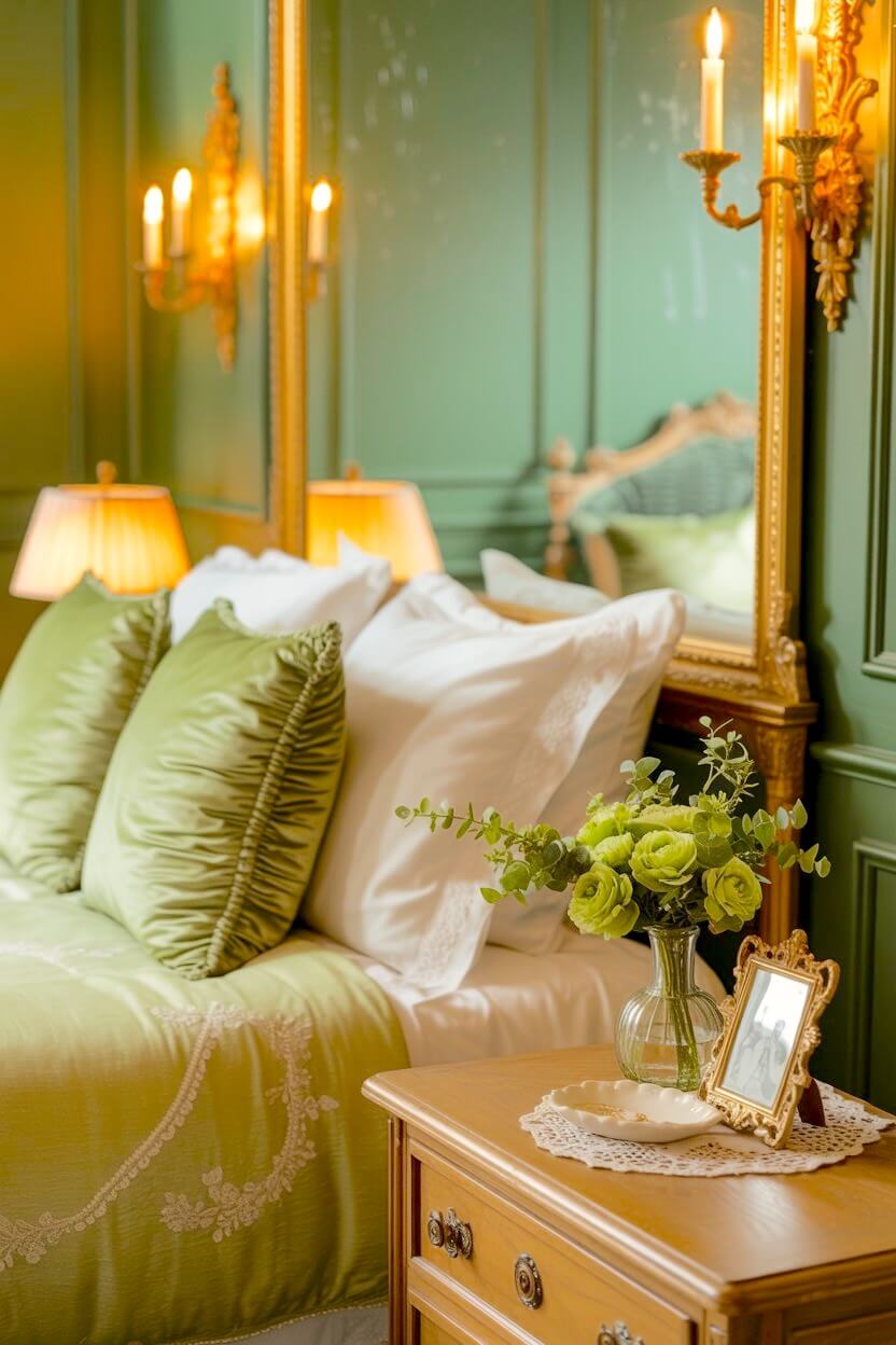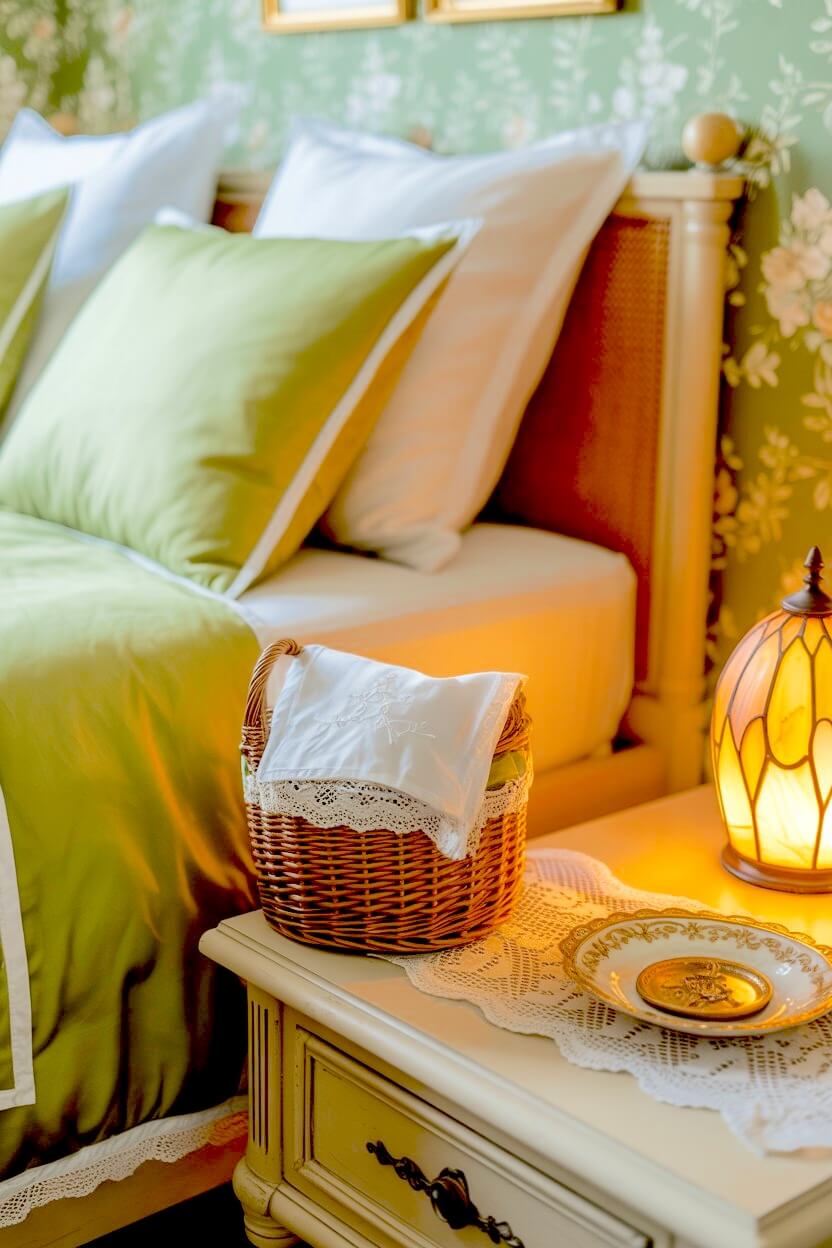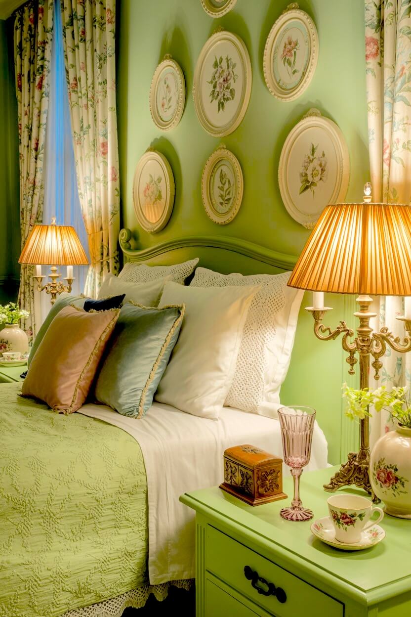 ・6+ Timeless Green Grandmacore Bedside Decor Ideas That Never Go Out of Style