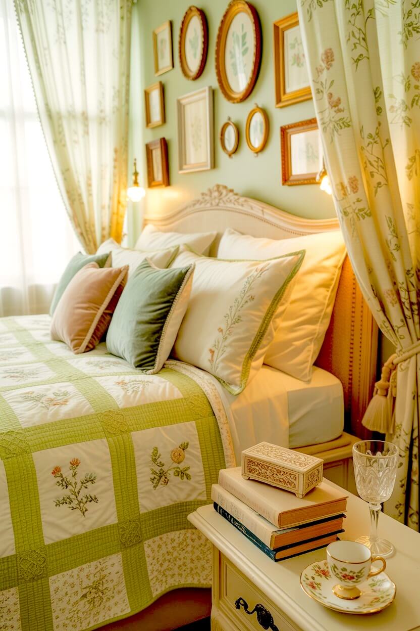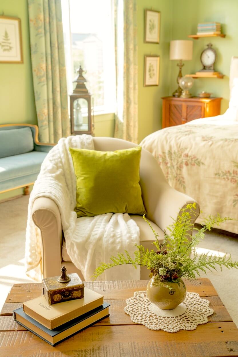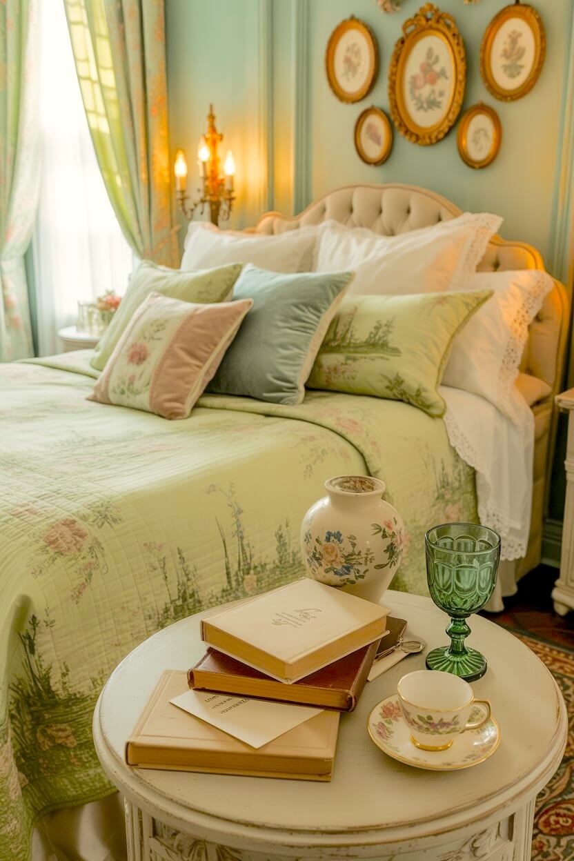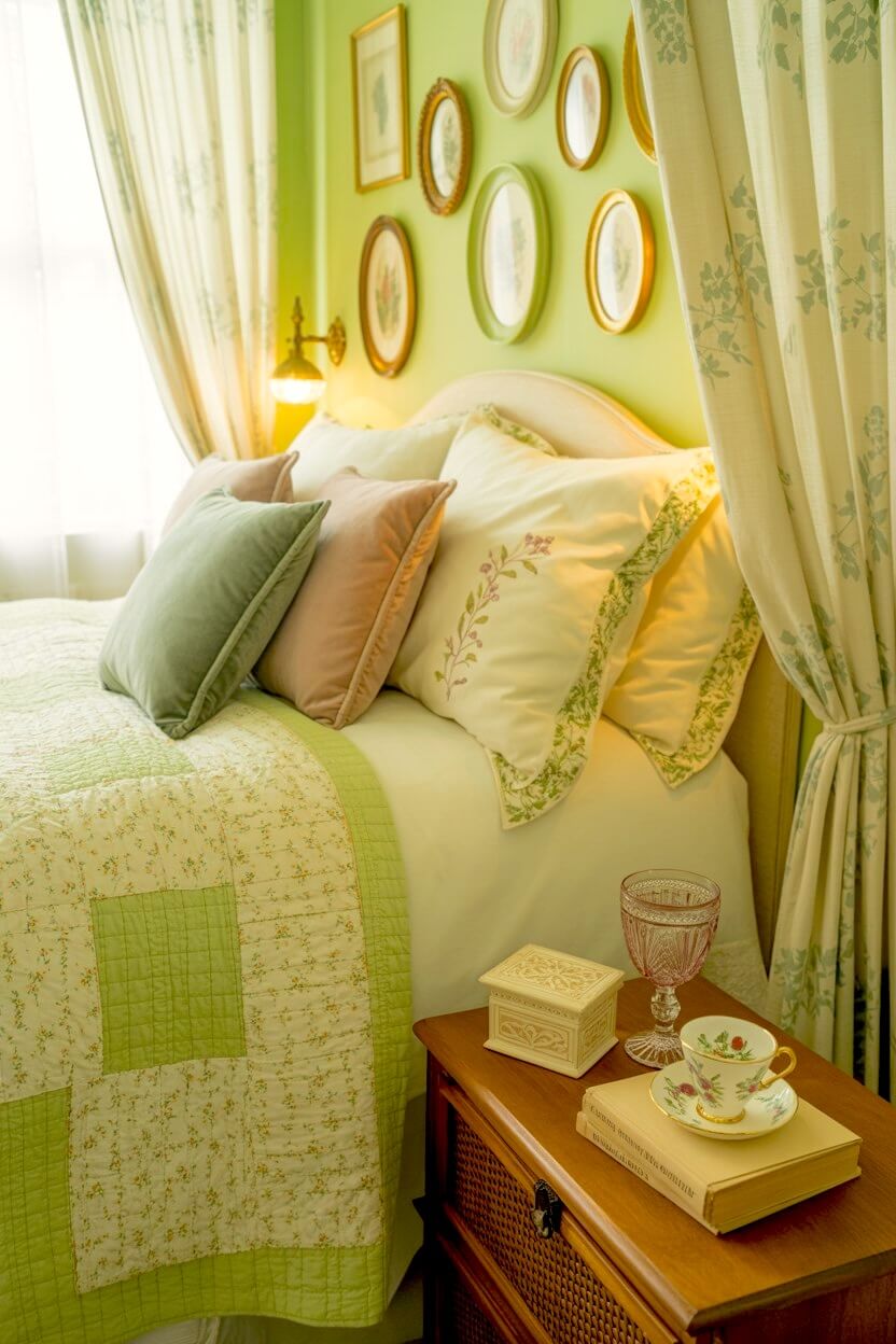 ・6+ Timeless Green Grandmacore Bedside Decor Ideas That Never Go Out of Style
