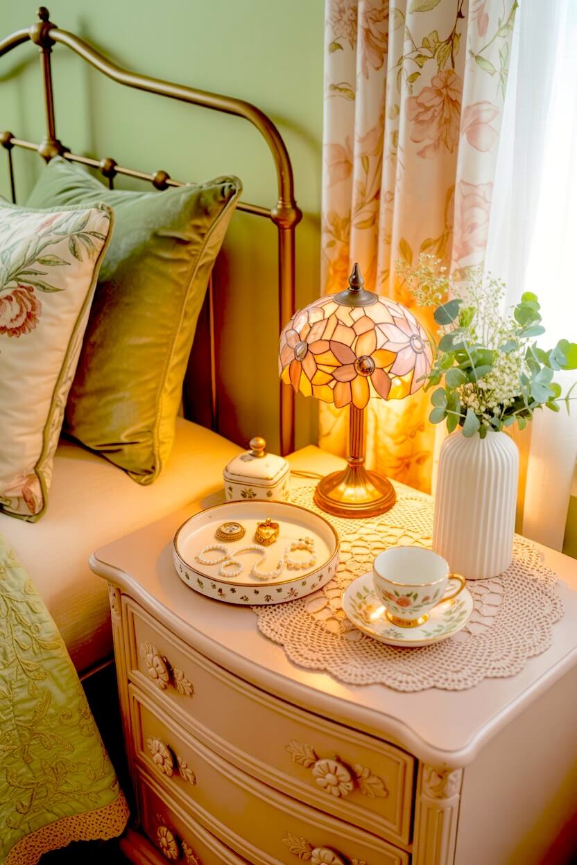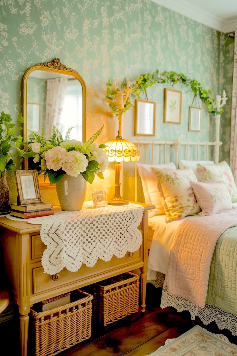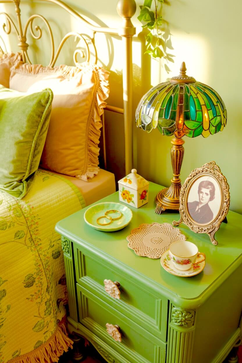 Green Grandmacore Bedside Decor Ideas