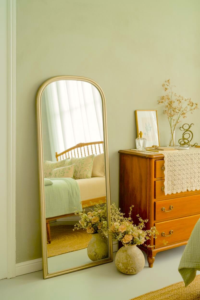 Fresh Cottage Green Grandmacore With a Soft-Mint Dresser and Cream Keepsakes