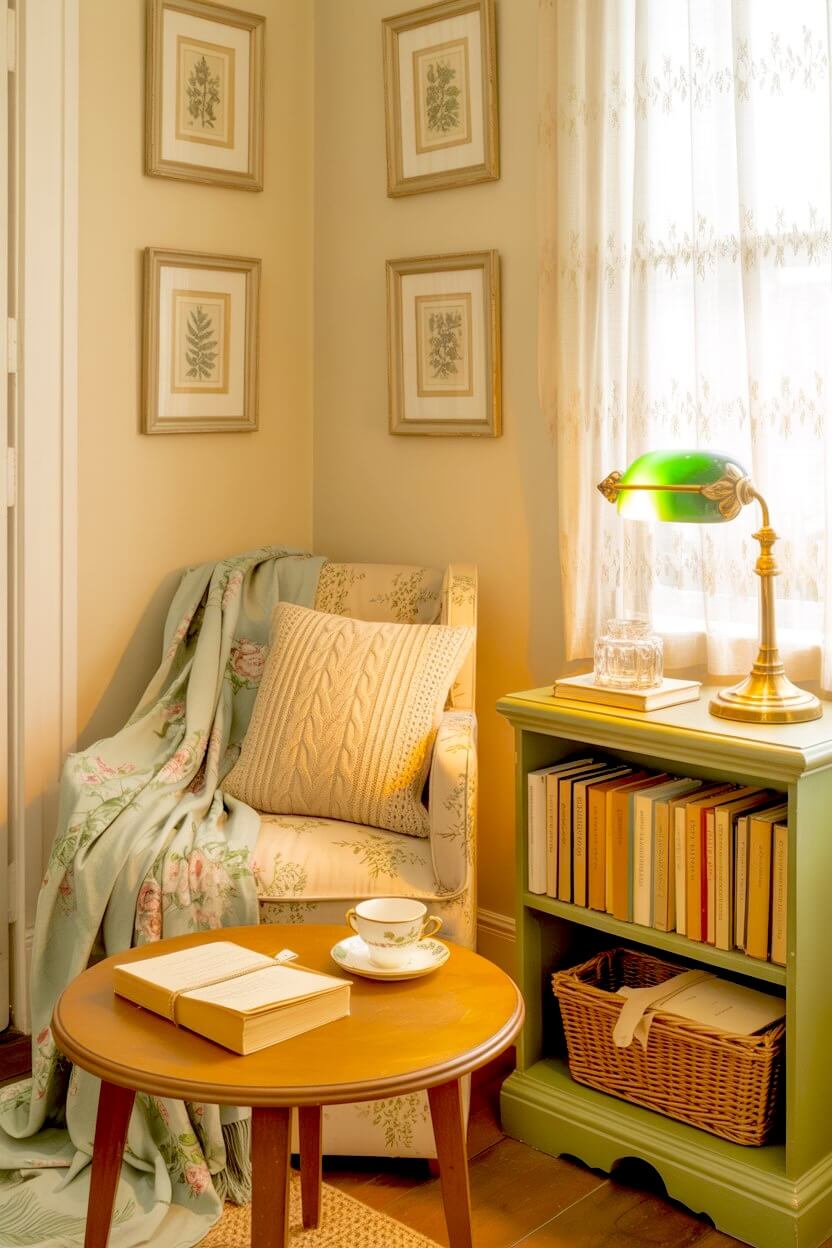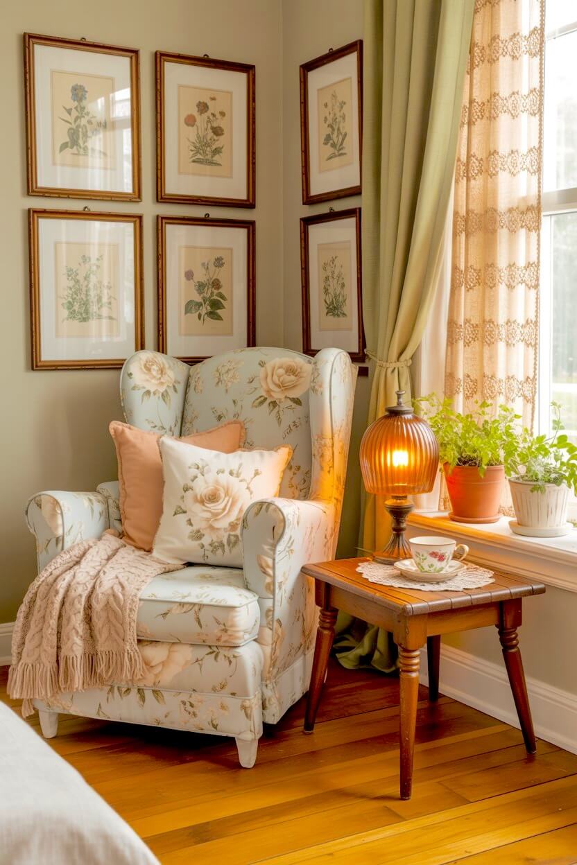 If you love a small, enclosed cottage-style nook—where the walls sit close, the furniture stays compact, and everything feels gathered in one place—and want to ease grandmacore details into it naturally, this setup is a great place to start.