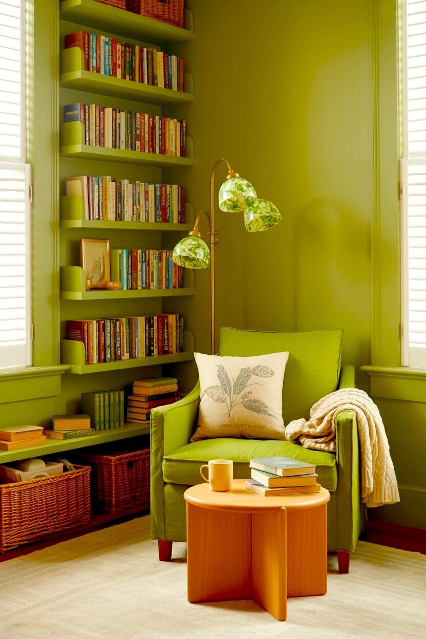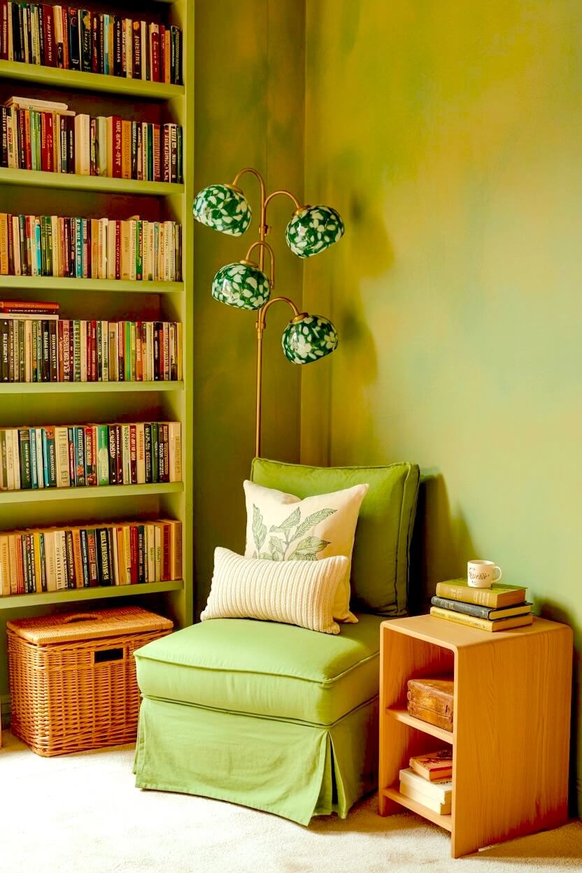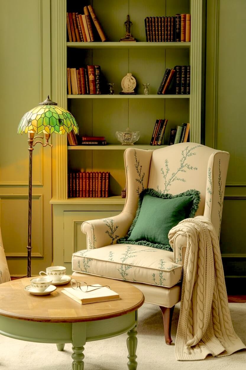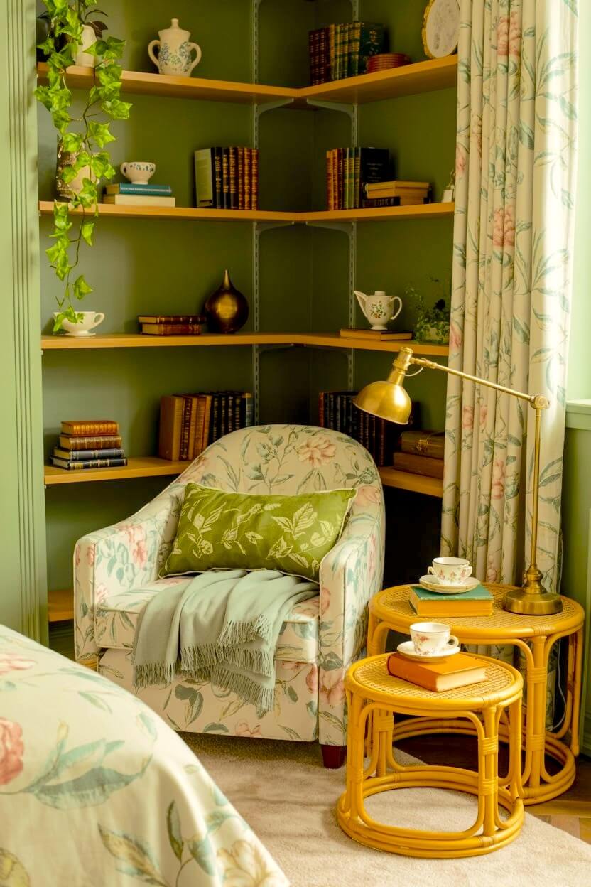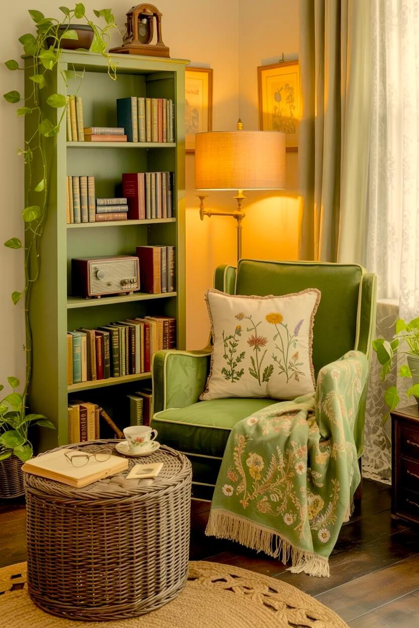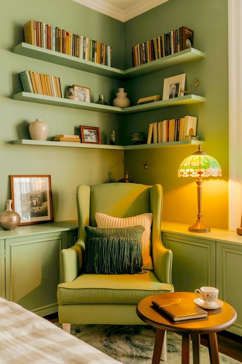 Among all the unconventional green grandmacore reading nook looks, this is the one I find most compelling.