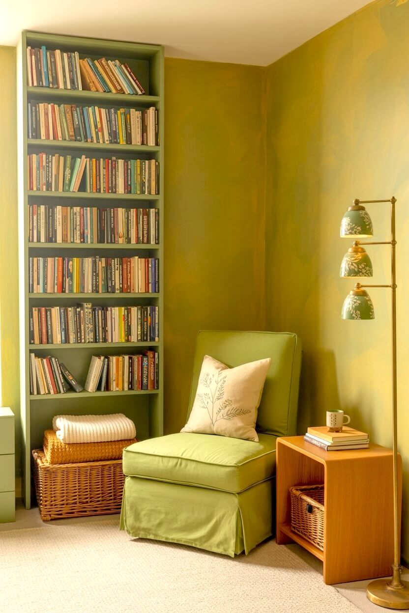 And darker olive or sage feel quieter and shift the mood toward something calmer and more settled, suiting longer evening reading sessions.