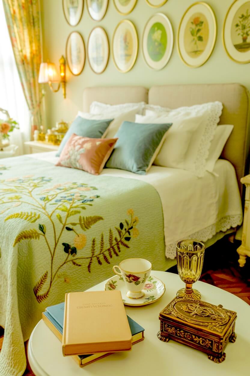 ・6+ Timeless Green Grandmacore Bedside Decor Ideas That Never Go Out of Style
